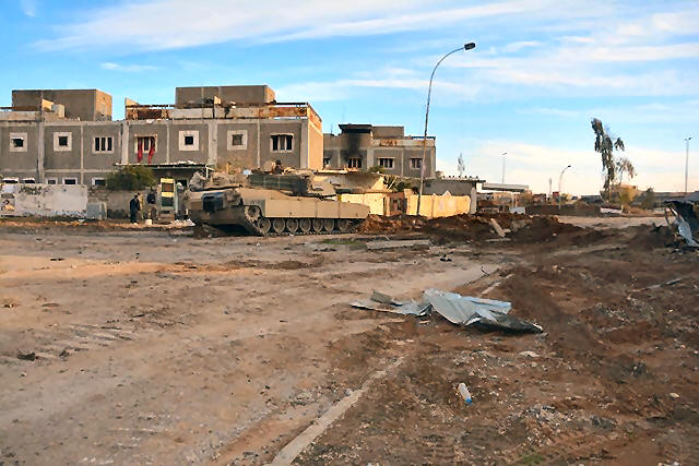 A tank is seen during battle with Islamic State militants in Mosul,