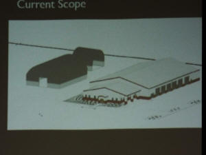 new facility. In the drawing, the large building on the right is