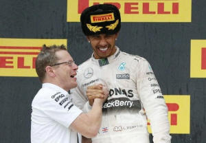 third title and winning 10 grands prix to team mate Nico Rosberg's