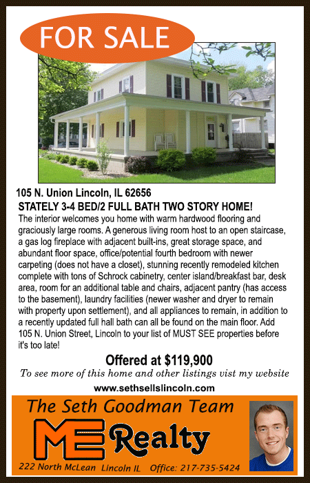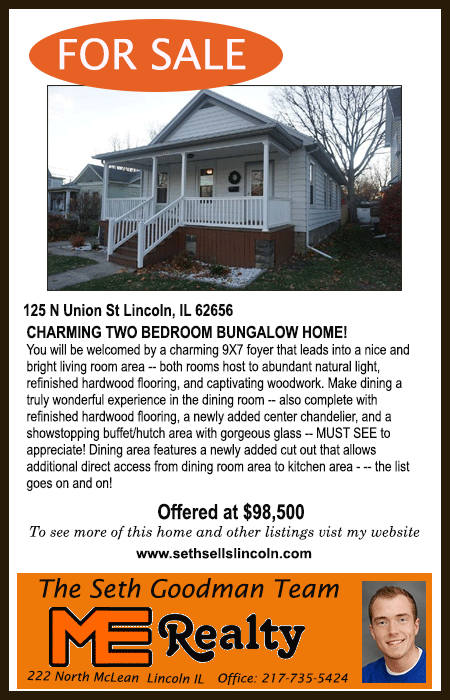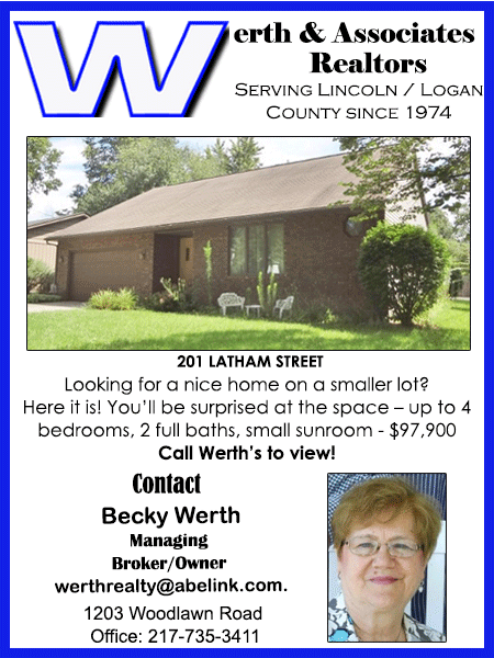 All real estate advertised in the Lincoln Daily News is subject to the Fair Housing Act for 1968 which makes it illegal to advertised "any preference, limitation, or discrimination based on race, color, religion, sex or national origin, or intention to make special preference, limitations, or discrimination."