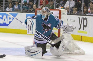 Sharks goaltender Alex Stalock made 17 saves.