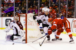 in front for his ninth goal of the season. Red Wings defenseman Mike