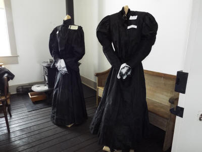 displays including women's garments and a Civil War uniform.