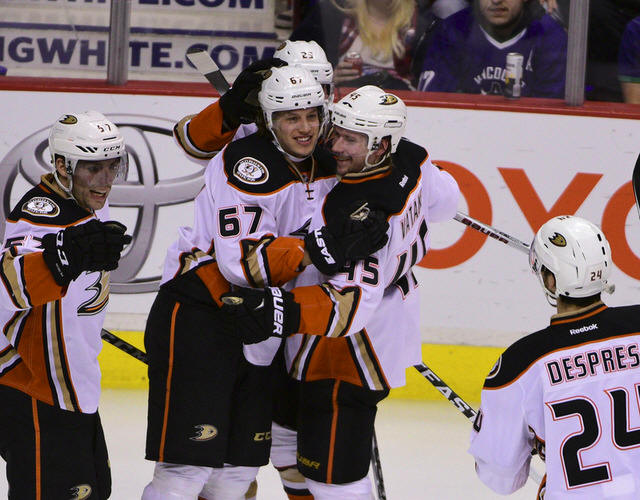 The Ducks scored goals 27 seconds apart in the third period to put
