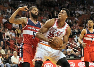 Heat forward Luol Deng suffered a dislocated right middle finger but