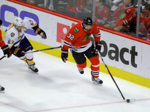 opportunities by Blackhawks center Jonathan Toews during the first