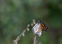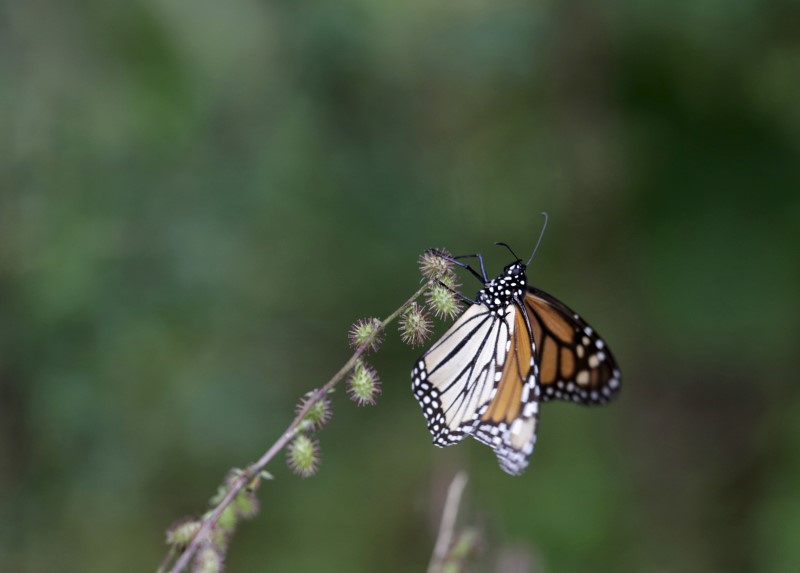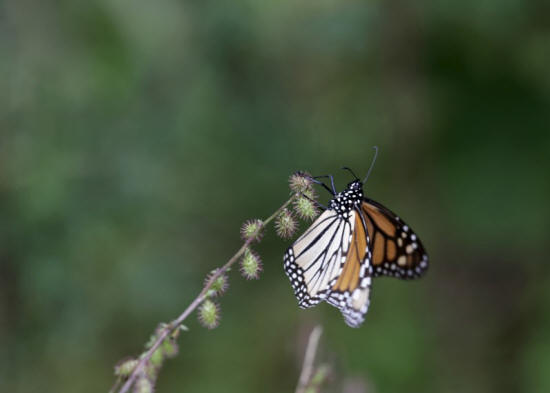 Monarch butterfly rests on a plant in