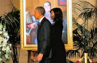 President Barack Obama and first lady Michelle Obama walk past a