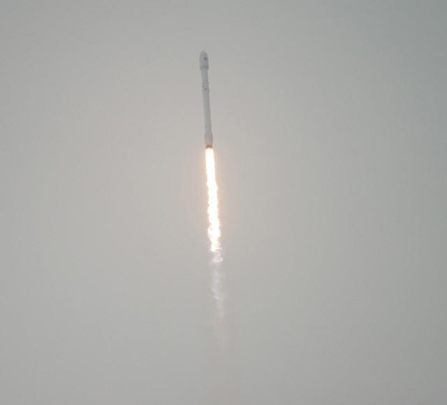 The SpaceX Falcon 9 rocket is seen as it launches from