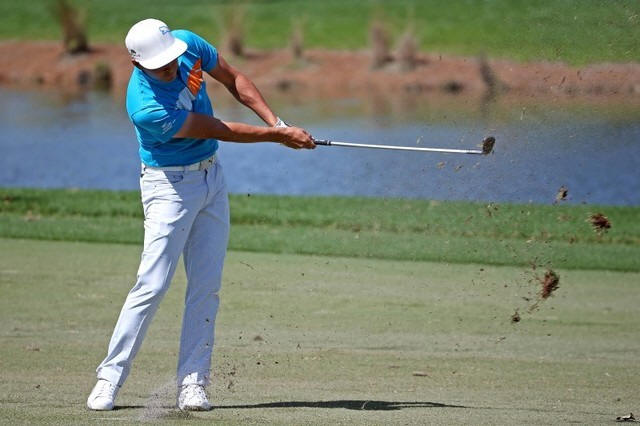Rickie Fowler plays from the 9th fairway during the second round