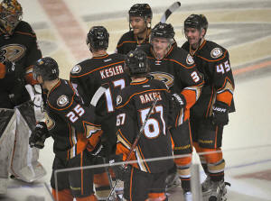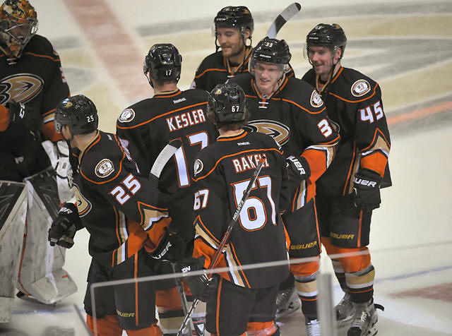 Center Ryan Getzlaf also scored to extend his point streak to 10