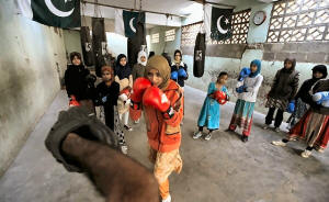 training at the Pak Shaheen Boxing Club in Lyari, a packed Karachi