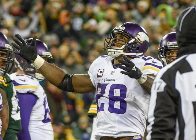 Adrian Peterson botching the exchange, but the latter pounced on the