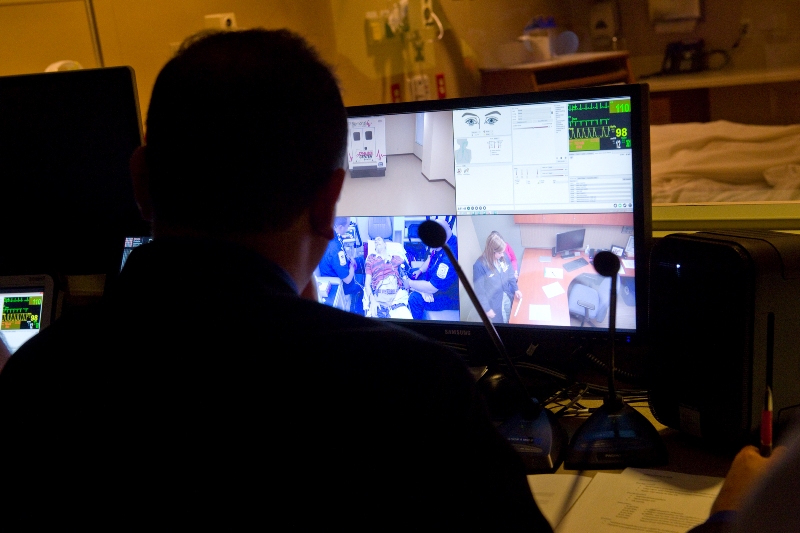 ill patient during the simulation, is examined by healthcare