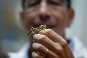 inspected a locust grown in his laboratory.