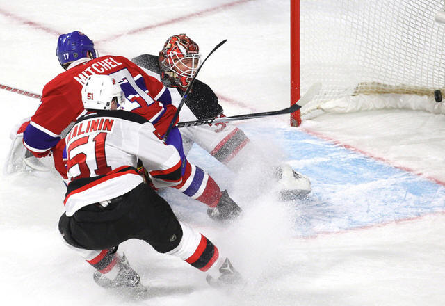 attempted pass by the Devils at the Montreal blue line went into the