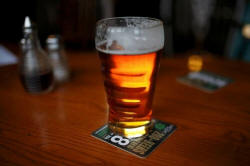 is often pictured in a pub with a pint of beer.