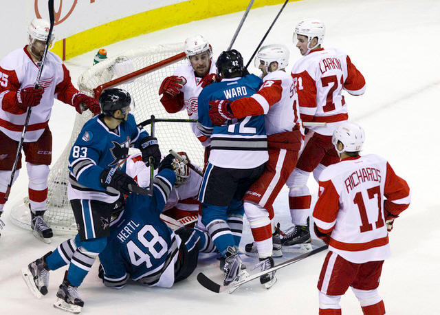 San Jose peppered the Detroit net with 16 shots in the first period,