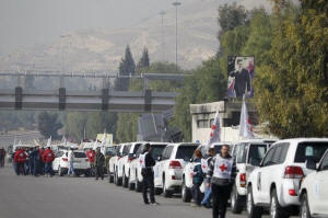 preparing to depart from Damascus for Madaya. Vehicles heading for