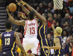 The Rockets twice forced Pacers guard Monta Ellis into misses inside