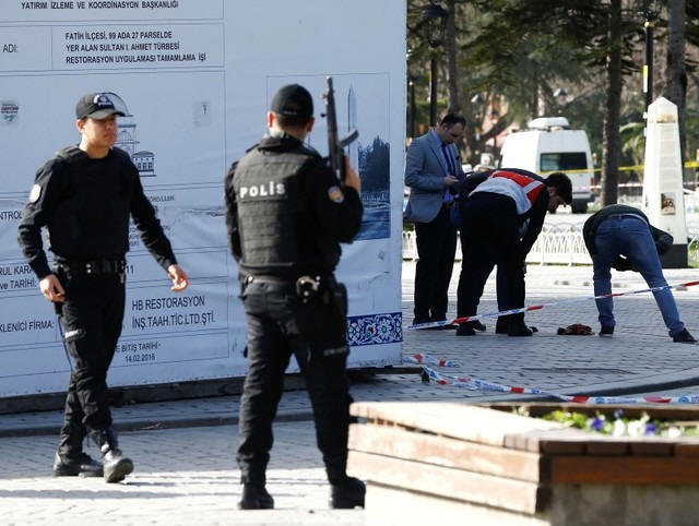 Several bodies lay on the ground in the Sultanahmet square, close