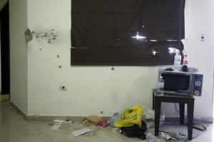 Bullet holes peppered the stair wall of the house and there was