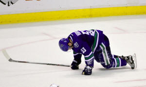 in overtime, giving the Vancouver Canucks a 3-2 victory over the Florida