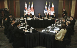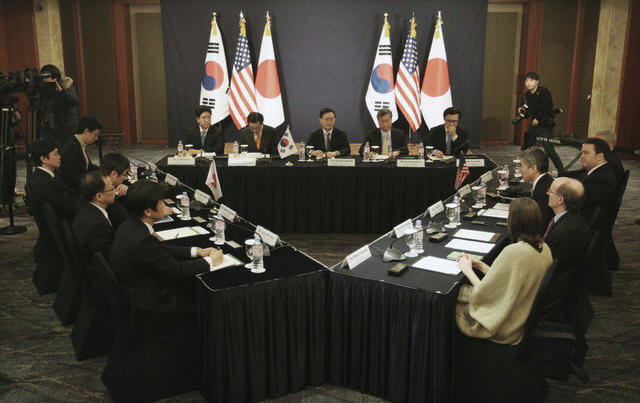 met with his South Korean and Japanese counterparts in Seoul on