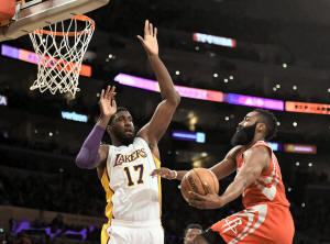 leading the Rockets to a 112-95 rout Sunday night at Staples Center.