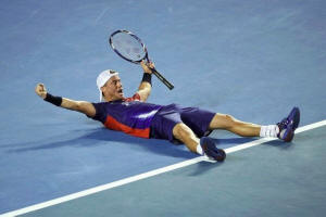 the Rod Laver Arena lights and celebrated wildly after sealing the
