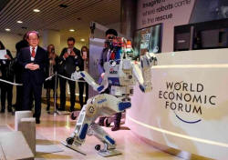 robot called HUBO, which is strutting its stuff amid a crowd of