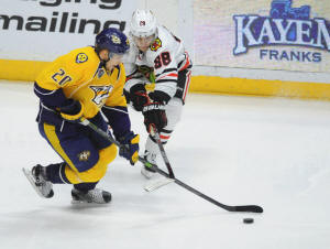 its next eight games on the road. ... Nashville LW Colin Wilson and