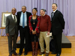 Pictured above, from the left are breakfast committeeman Rev. Glenn Shelton, keynote speaker Dr. Arthur Sutton, scholarship recipient Shakia Dawson, committeeman Les Plotner, and Lincoln College President Dr. David Gerlach.
