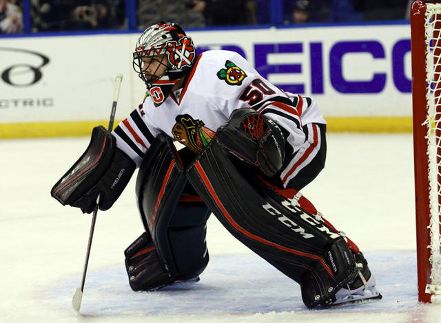 Victor Hedman past Chicago goalie Corey Crawford. The goal was