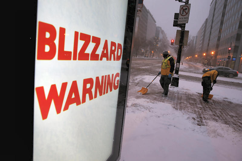clear snow as it falls near Farragut Square in Washington January 22, 2016. As