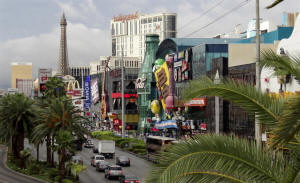 The Las Vegas Strip, typically packed with cars and pedestrians