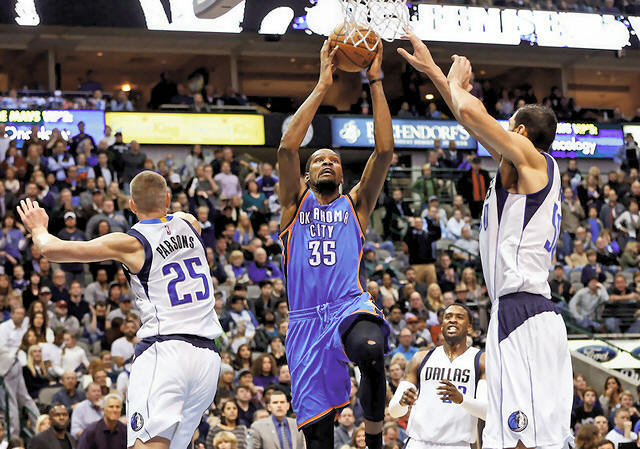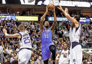 Durant was only 2 of 8 from beyond the arc, but the two he hit in