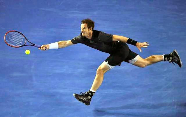 Britain's Andy Murray stretches for a shot during his fourth