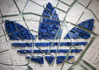 The Adidas logo on a 3D city map is pictured at the flagship