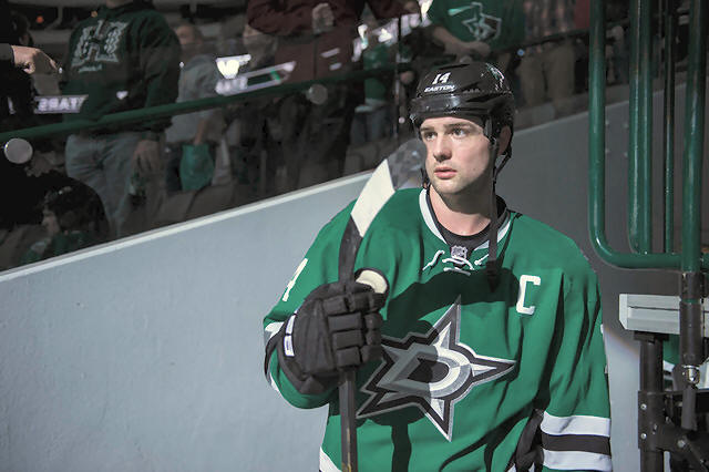 1:20 after Stars left winger and captain Jamie Benn broke a