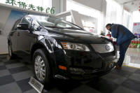 a BYD e6 electric car at a dealership in Beijing, China, in this