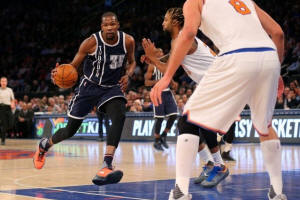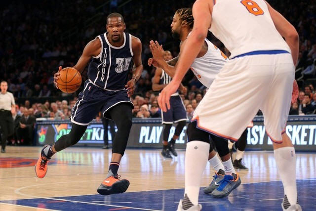 Durant deposited 13 points to lead the Thunder to a 38-34 first