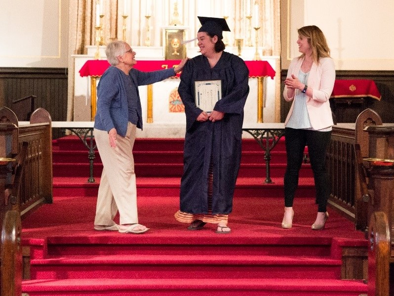 Champion Ellen Burbage, left, congratulating JFL graduate