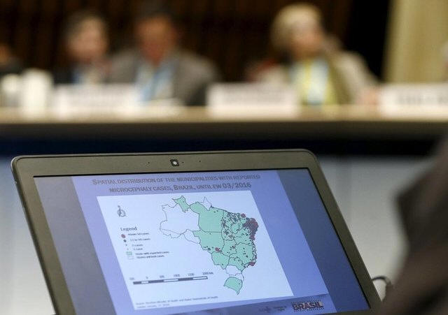 A slide on the Zika cases distribution in Brazil is pictured