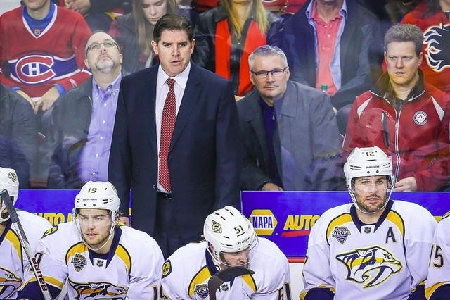Predators head coach Peter Laviolette on his bench against the