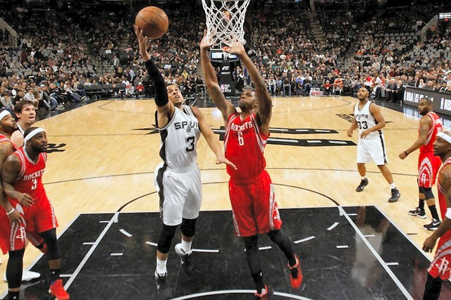 Spurs point guard Ray McCallum (3) shoots the ball as Houston