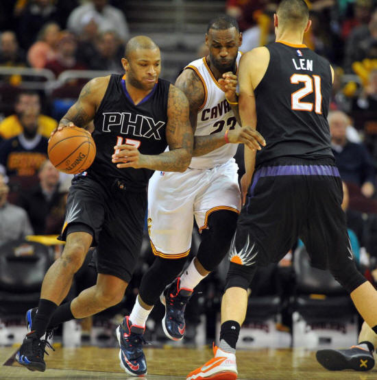 forward LeBron James (23) and Phoenix Suns forward P.J.