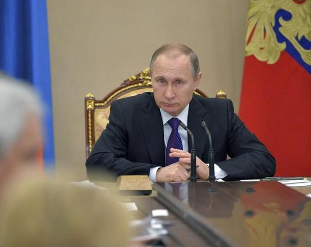 Russian President Vladimir Putin chairs a government meeting to