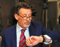 Sebastian Coe, IAAF's President, checks time ahead of a news