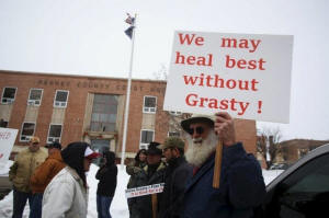 A 79-year-old rancher, Monte Siegner, held a sign that read: